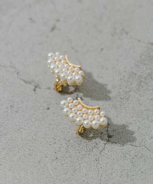 小粒のパールを、扇形にぎっしりと敷き詰めた華やかなイヤリングです。