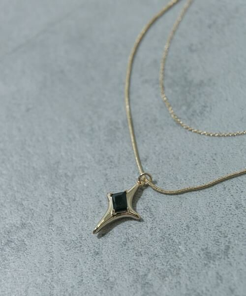 ブラックのスクエアビジューがあしらわれたキラキラモチーフがポイントのロングネックレス。