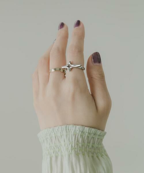 星を象ったようなモチーフが目を引くシルバーリングと、シンプルで上品なゴールドカラーのリングのセット。