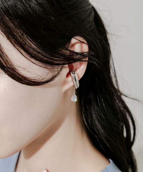 シンプルなイヤーカフに一粒のビジューが揺れる、洗練された印象のアイテム。