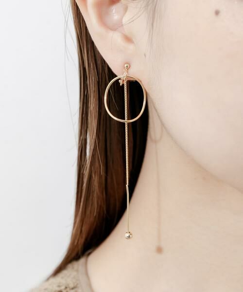 ニュアンス感のあるサークルモチーフとロングチェーンが組み合わさった、独特なシルエットが魅力のイヤリング。
