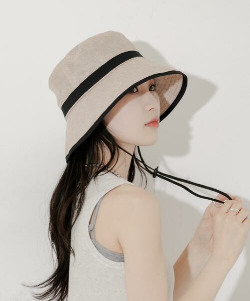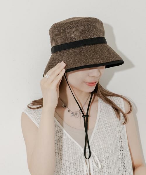 ジュート風のナチュラルな素材感が夏らしいバケットハット。