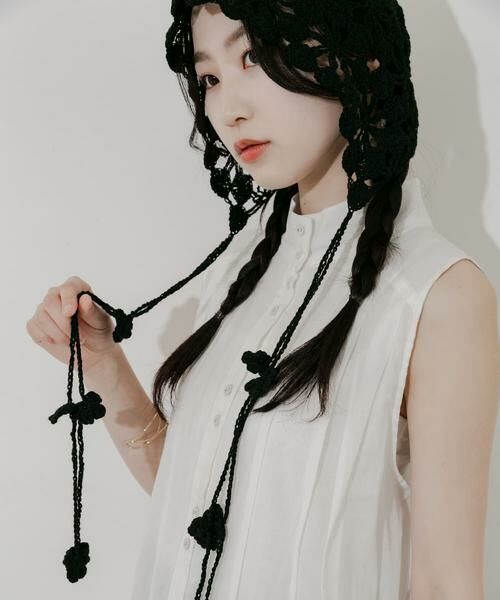 フラワー柄の編み目が可愛いクロシェボンネットが登場。
