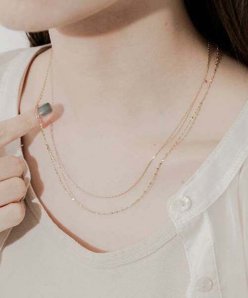 光を受けてさりげなく輝く、繊細な2連チェーンネックレス。