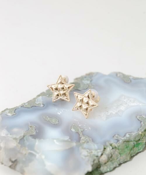表面に施された凹凸加工が特徴の、スターモチーフイヤリング。