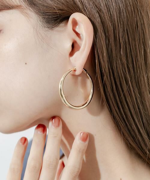 飽きのこないシンプルなデザインが魅力の、大ぶりフープピアスです。