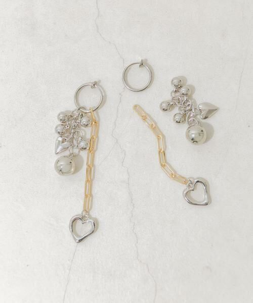 ゴールドとシルバーのミックスカラーに、ハートやボールなど様々なチャームが加わり、コーディネートに遊び心をプラスします。