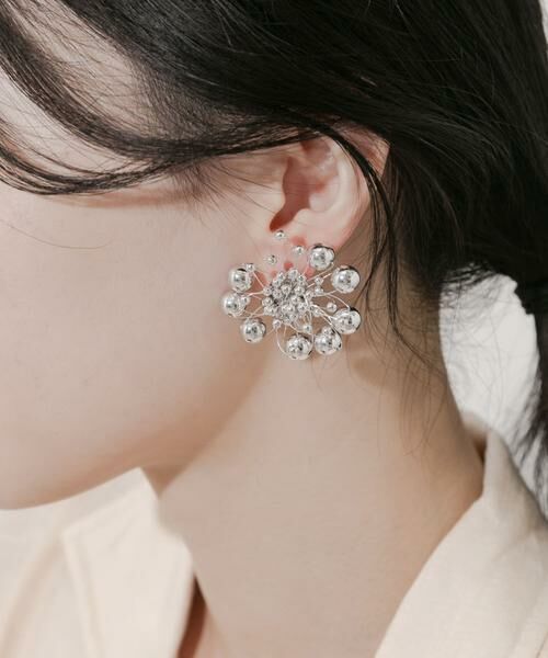 小さなメタルボールが放射状に連なったアーティーなデザインのイヤリング。
