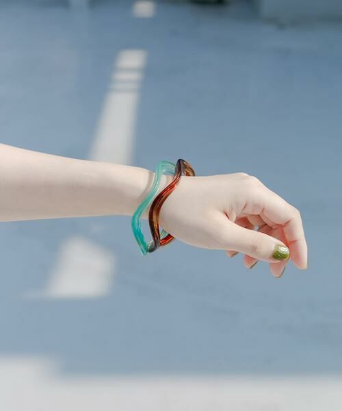 波打つようなウェーブデザインが魅力のクリアバングル2点セット。