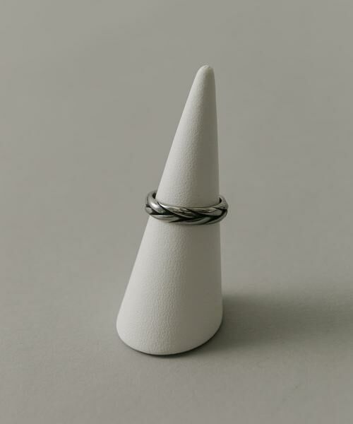 メタルラインが絡み合ったような模様が印象的なリング。