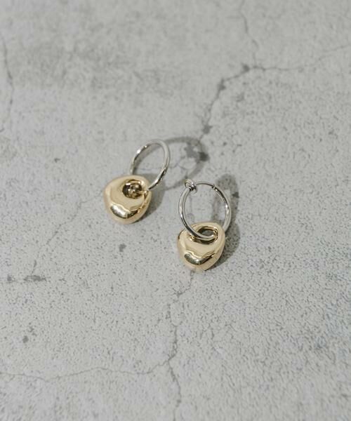 ニュアンス感あるゴールドの変形モチーフとシルバーのフープが連なったイヤリング。