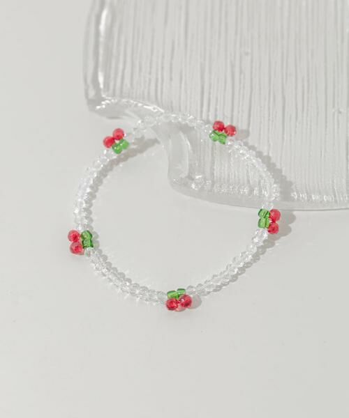 チェリーモチーフが散りばめられた、可愛らしいビーズブレスレット。