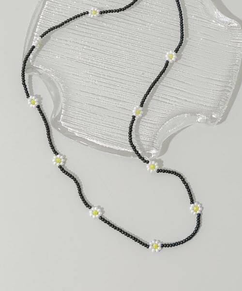 小さなビーズが連なり、その間に可憐なお花モチーフが散りばめられたショートネックレス。