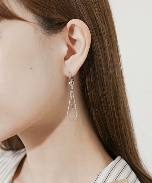 ワンタッチタイプのシンプルなフープピアスに、二種類のチェーンが連なったデザインピアス。