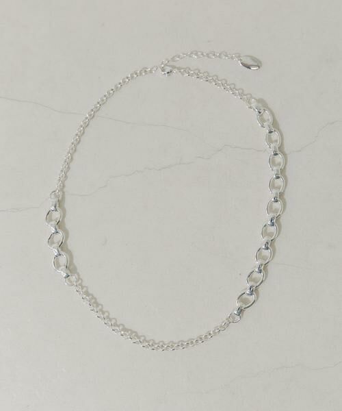 太さや形の異なるチェーンを組み合わせた個性的なネックレス。