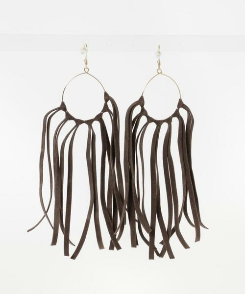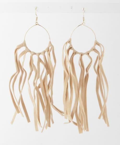 メタルリングとフリンジの組み合わせが印象的で顔周りのアクセントになるアイテム。