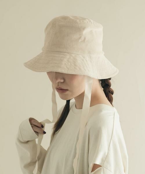 【人気のバケットに新しいタイプが登場】取り外し可能なリボンが付いた、2WAYタイプのバケットハットです。柔らかいカラーのコーデュロイが女性らしい印象で、リボンが今年らしいポイントです。※モデルの着用画像の場合、光の当たり具合により、実際の色味と異なって見えることがございます。色味は、商品単体の画像をご参照ください。