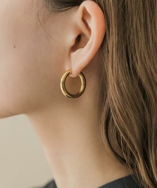 程よいボリュームが目を引くワイドシルエットのフープピアス。