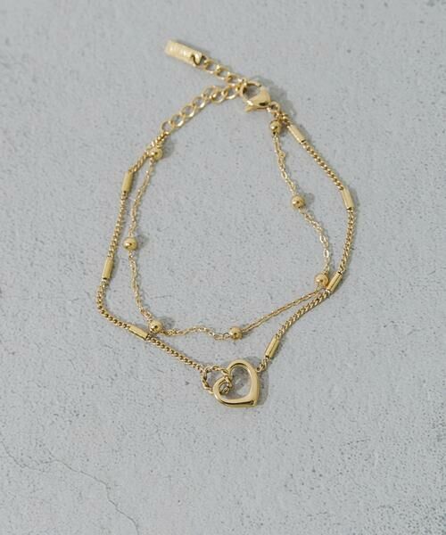 異なる種類のチェーンが二重になった重ね付け風のブレスレット。