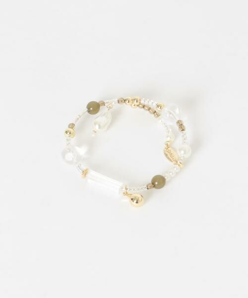 クリアビーズやメタルボール、パールなど様々なパーツが並んだブレスレット。