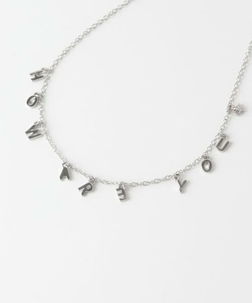 アルファベットのチャームが「HOWAREYOU」のメッセージ風に並んだ遊び心あるネックレス。