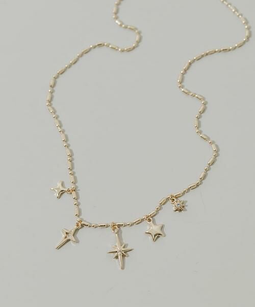 キラキラモチーフのチャームが連なった今年らしいデザインのネックレス。