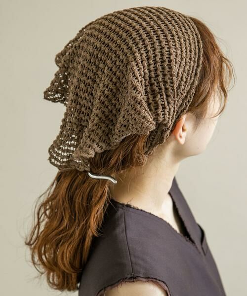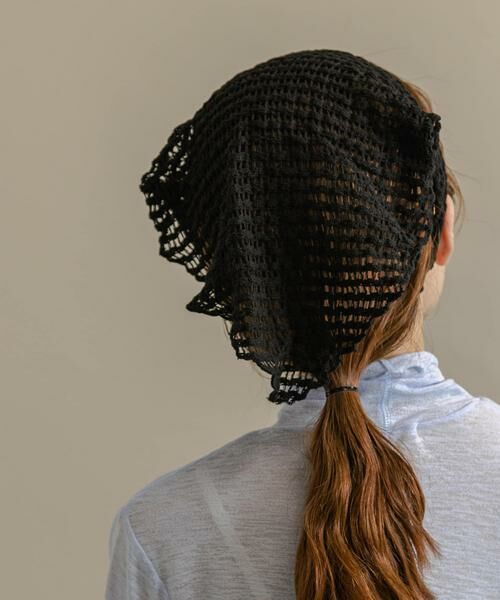 ざっくりと編み上げたメッシュ素材をヘッドスカーフに仕上げました。