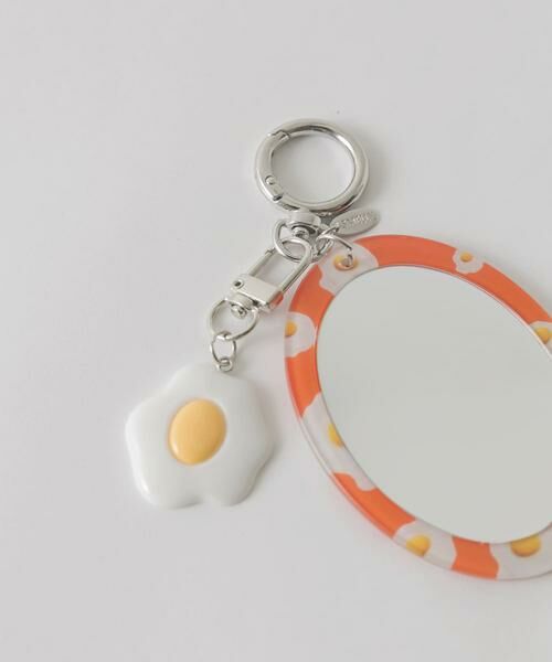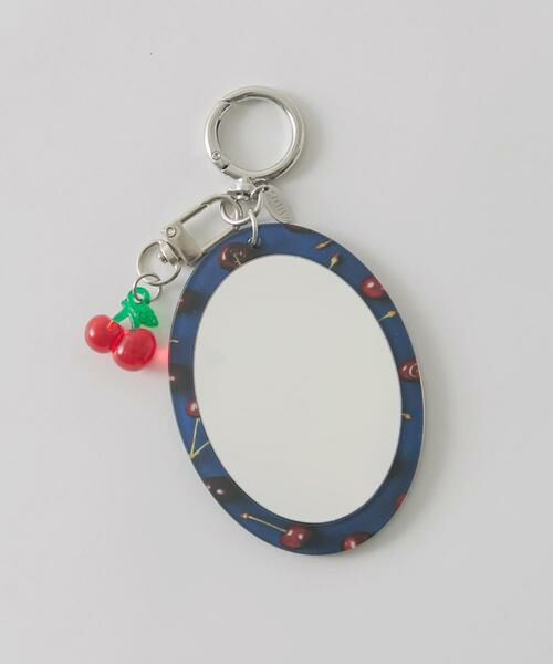 楕円形のミラーにミニチャームを添えた、ポップなデザインがかわいいキーチェーン。