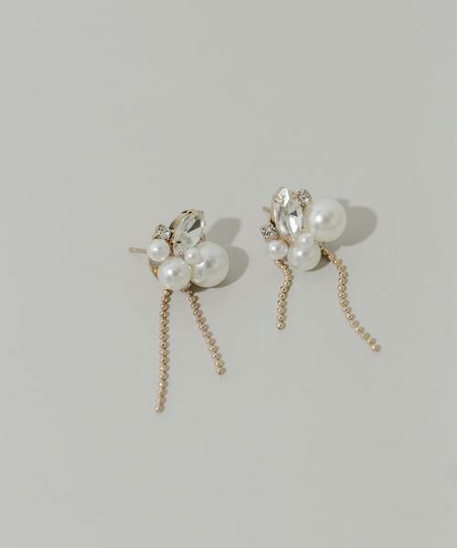 大きさの異なるパールと、煌めくビジューを贅沢に集めたピアス。