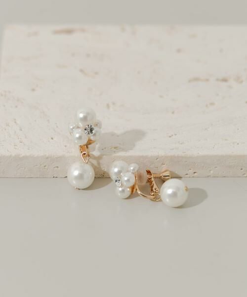 お花のような形に集まったパールとビジューが繊細にきらめくイヤリング。
