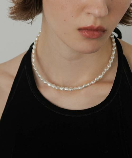 一つとして同じ形のないいびつなフォルムのパールを連ねたネックカフ。