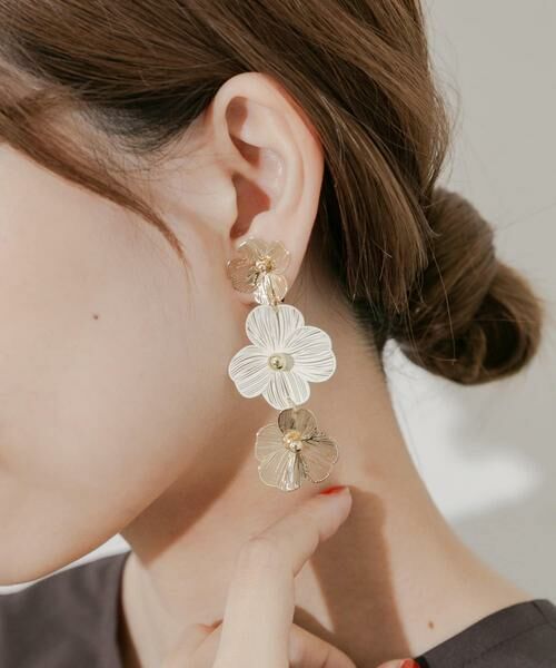 【横顔を華やかに彩る、3連フラワーイヤリング】