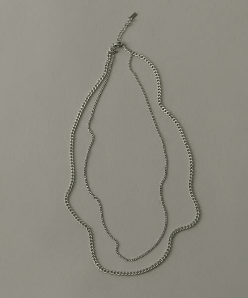 表情の異なる2種類のチェーンを組み合わせ、一つにまとめたネックレス。