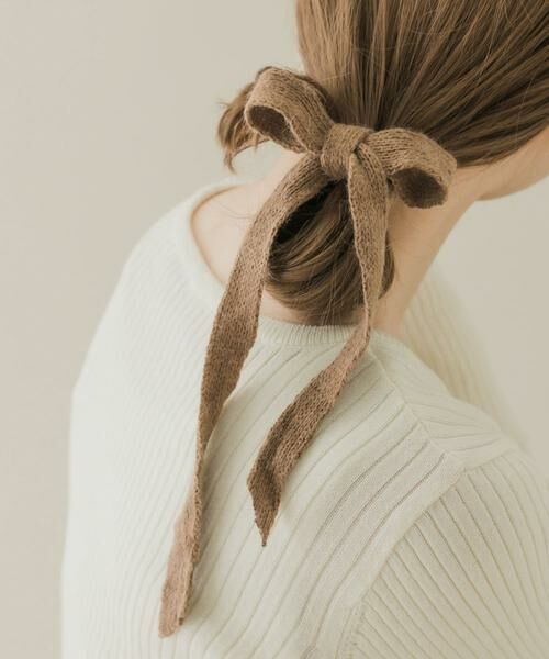柔らかくふんわりとしたニット生地で仕立てたロングリボンのヘアーカフ。