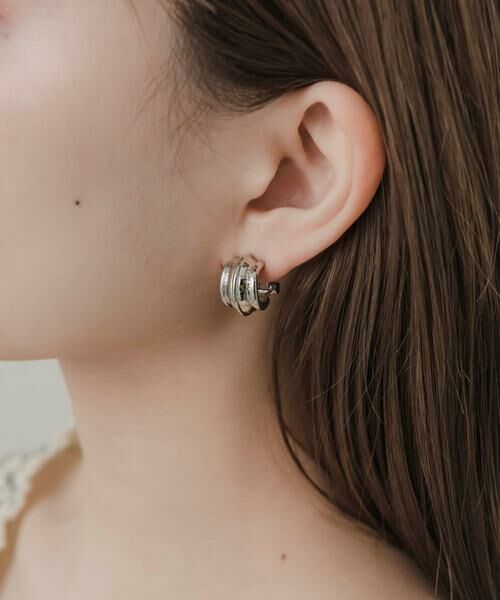 センターラインを取り入れてヴィンテージライクなルックスに仕立てたイヤリング。