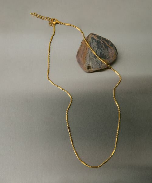 バーとメタルボールを交互に並べたような個性的なデザインチェーンが魅力のネックレス。
