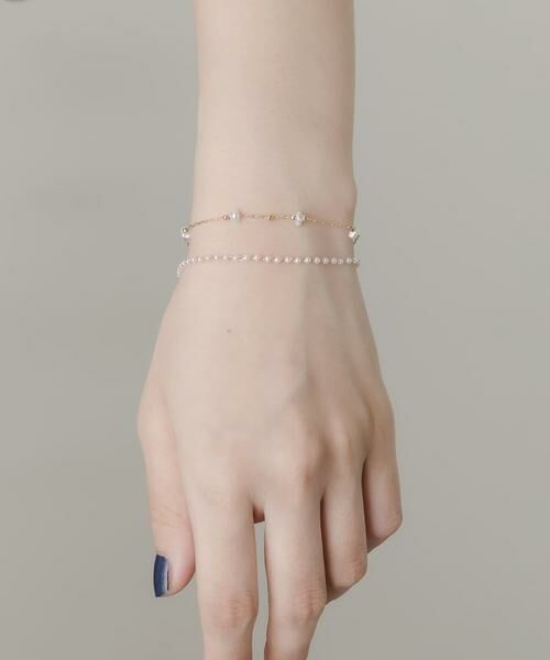 華奢なスリムチェーンとミニパールを組み合わせたブレスレットを二点セットでご用意。。
