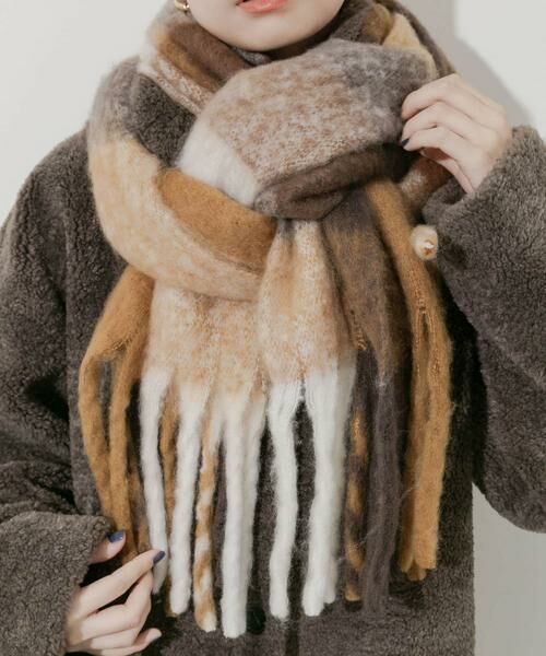 【ふわふわ起毛感が心地よい、大判チェックマフラー】