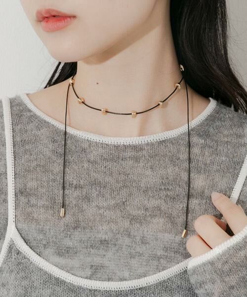 華奢なコードに配置されたメタルビーズがアクセントのチョーカーネックレス。