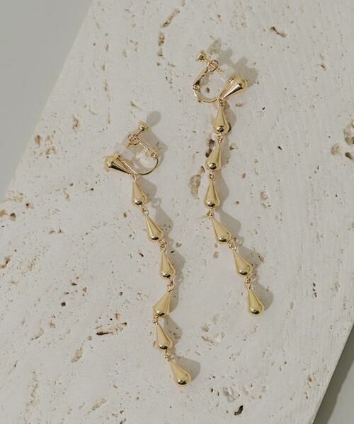 艶のある小さなドロップパーツを繋げたロングイヤリング。