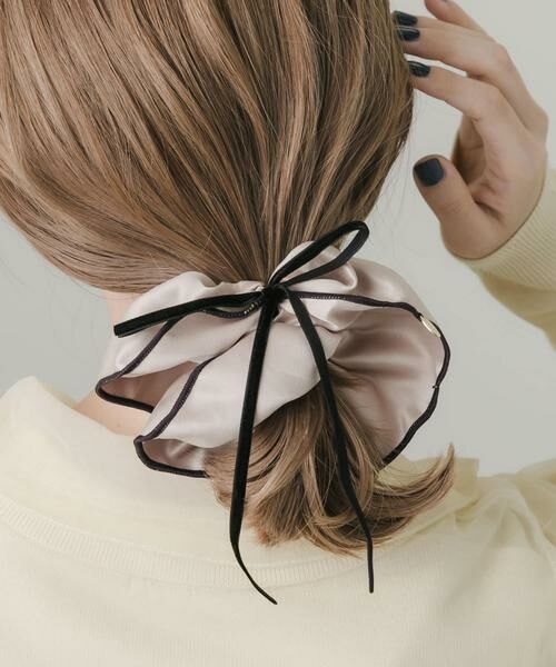 艶のあるサテン生地で、贅沢にボリュームを出したシュシュ。