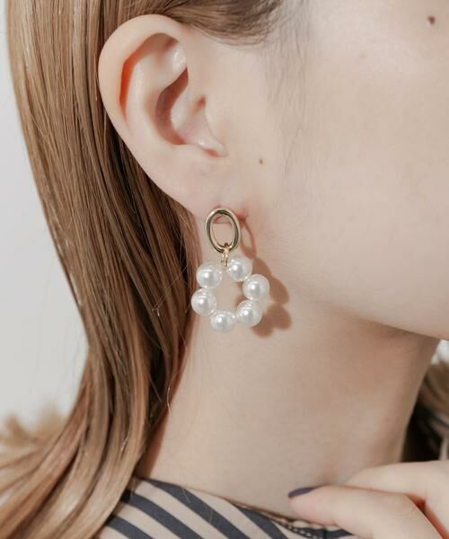 【顔周りを明るく彩るパールフープ】