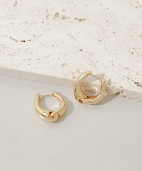 滑らかなゴールドのラインが結び目を作るように立体的に交差したフープピアス。