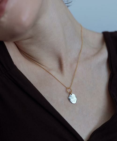 華奢なボールチェーンにいびつな形のプレートを組み合わせたネックレス。ニュアンスのある表面感が魅力です。ゴールドのチェーンに、シルバーカラーのプレートが映える、コンビカラーのデザインで、コーディネートにモダンで洗練された雰囲気をプラスします。