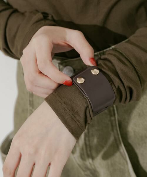 プラスワンするだけで一気に垢抜けた印象になるフェイクレザーのブレスレット。