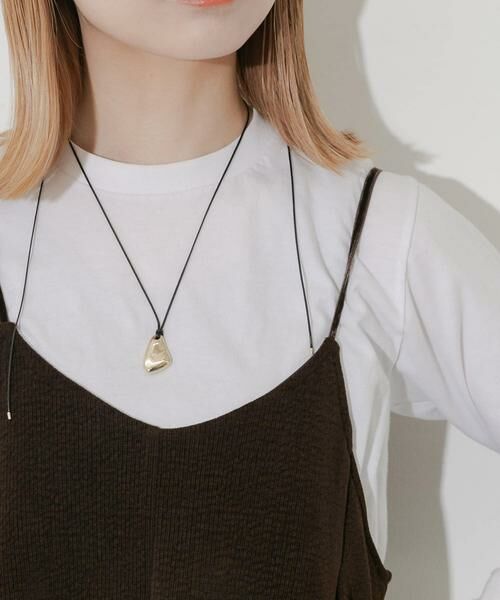 いびつなメタルのプレートが、胸元で輝くネックレス。