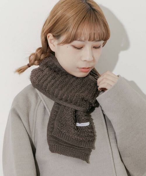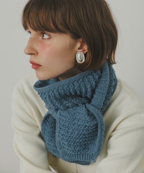 ぽこぽことした立体的な編み地が、表情豊かで愛らしいニットマフラー。