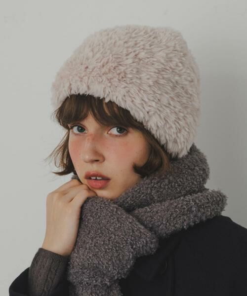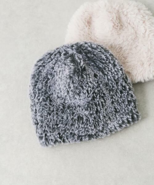 ふわふわとした柔らかな毛足が暖かく可愛らしいニットキャップ。