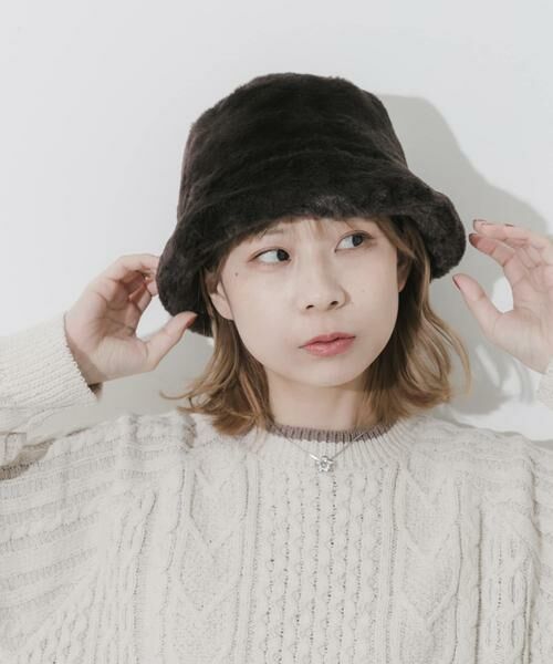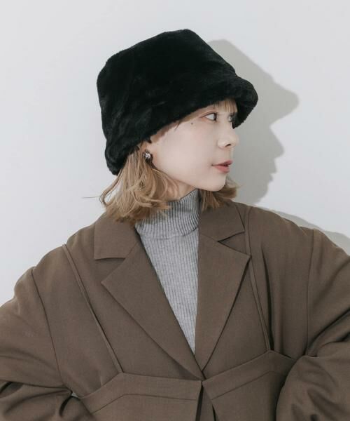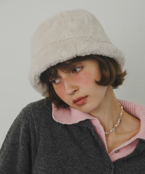 ふんわりとした毛足が愛らしい、エコファーのバケットハットです。