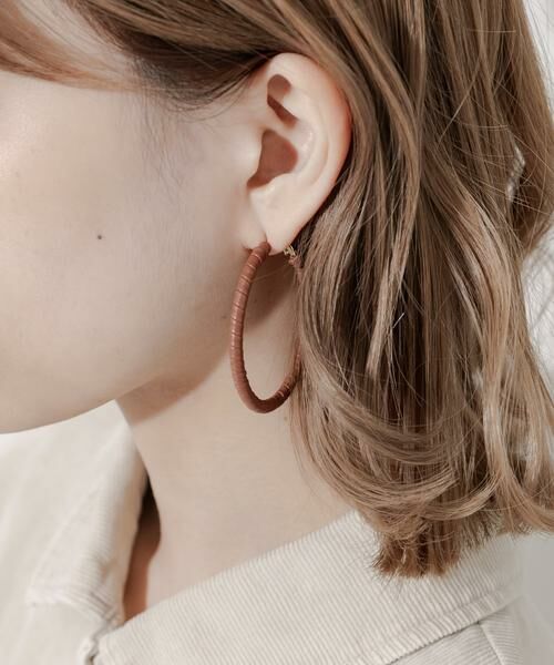 細いコードがフープ全体に丁寧に巻き付けられたデザインのピアス。